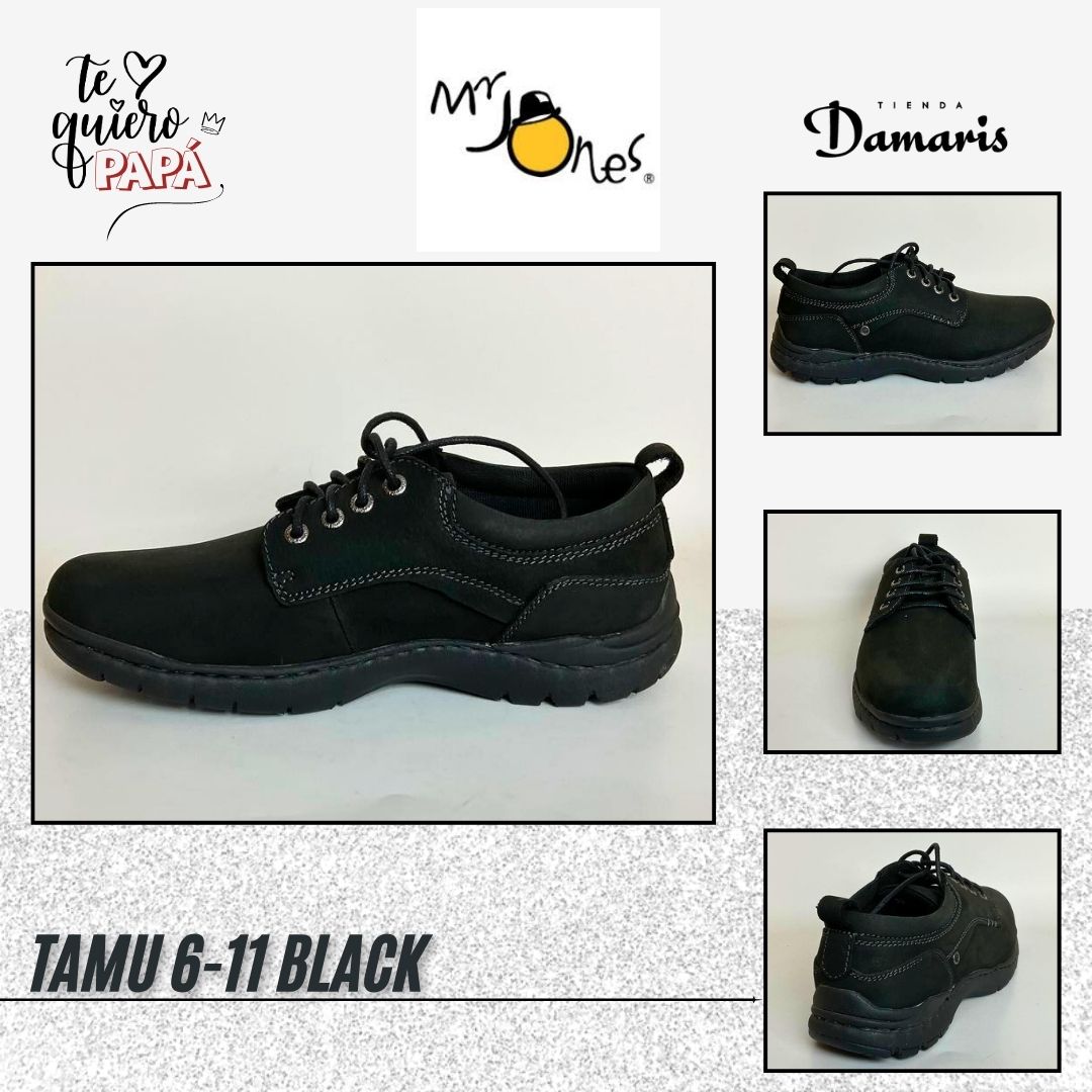 Zapato casual de hombre Mr. Jones modelo Tamu. Diseño de cordones negro, cómodo y duradero, ideal para el uso diario.